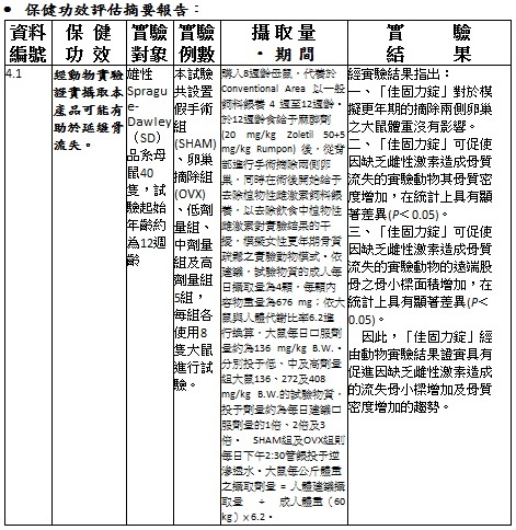 經動物實驗證實攝取本產品可能有助於延緩骨流失